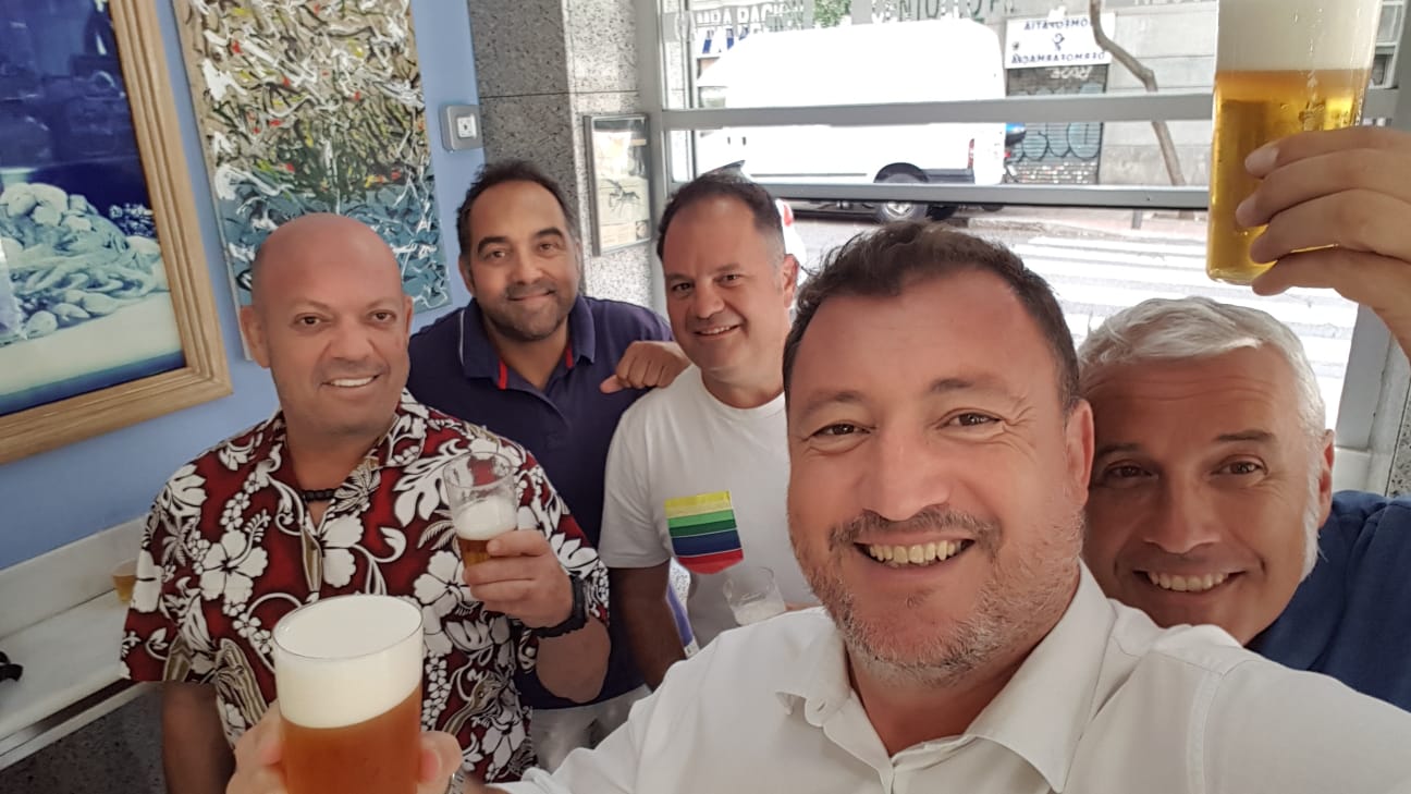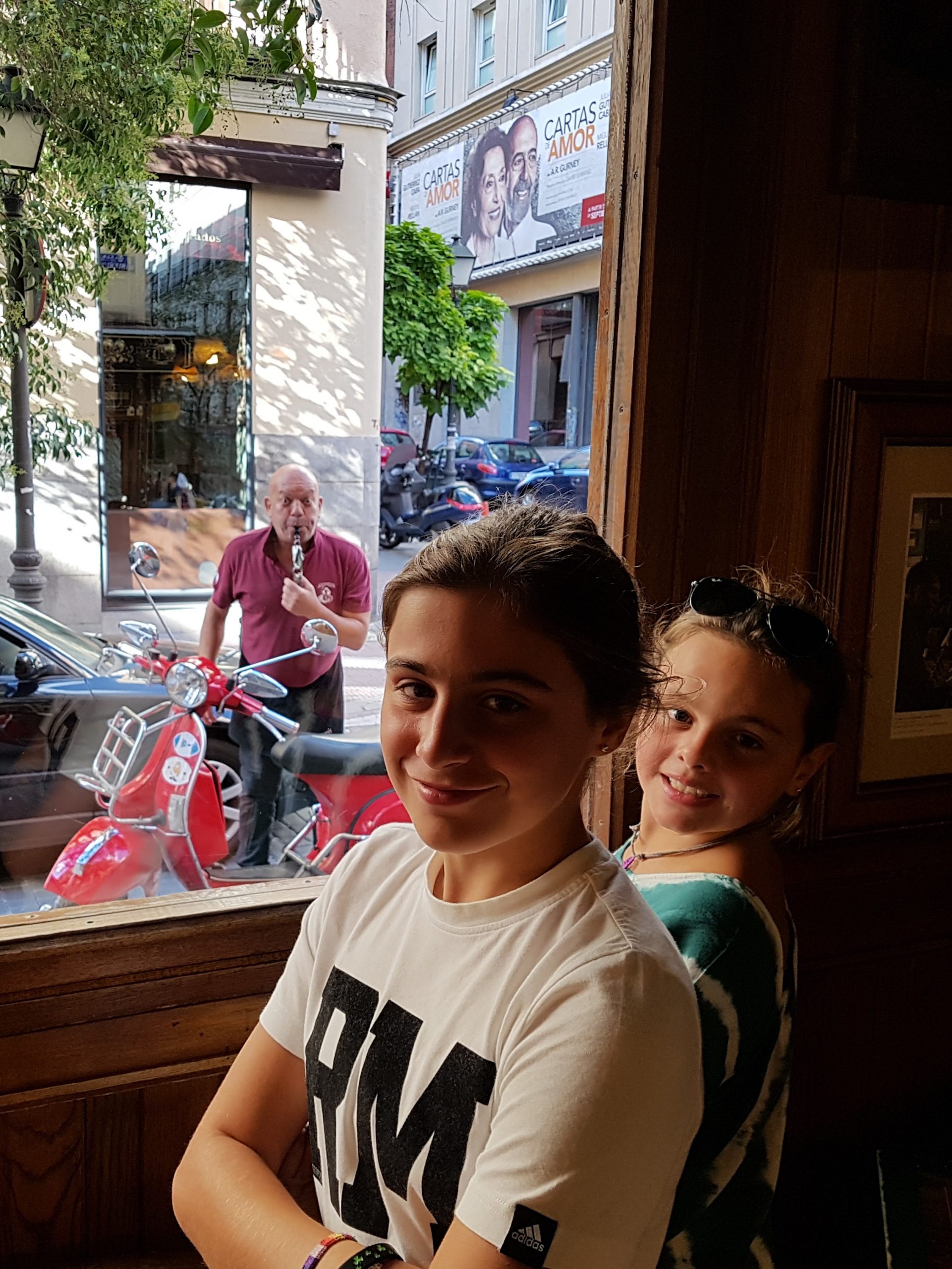 Con Edu, Sandra, Sergio, Patricia y Ana en un establecimiento de la Plaza del 2 de mayo. Madrid 2019