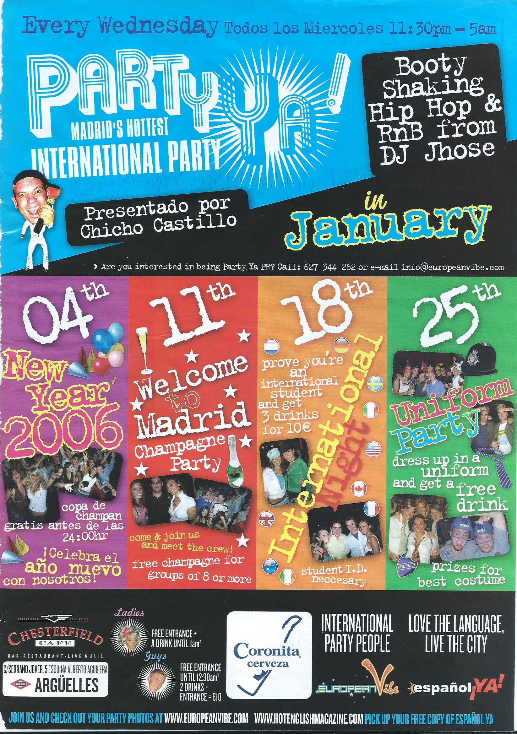 Flyer Party Ya! Chesterfield. Madrid 2003-2007