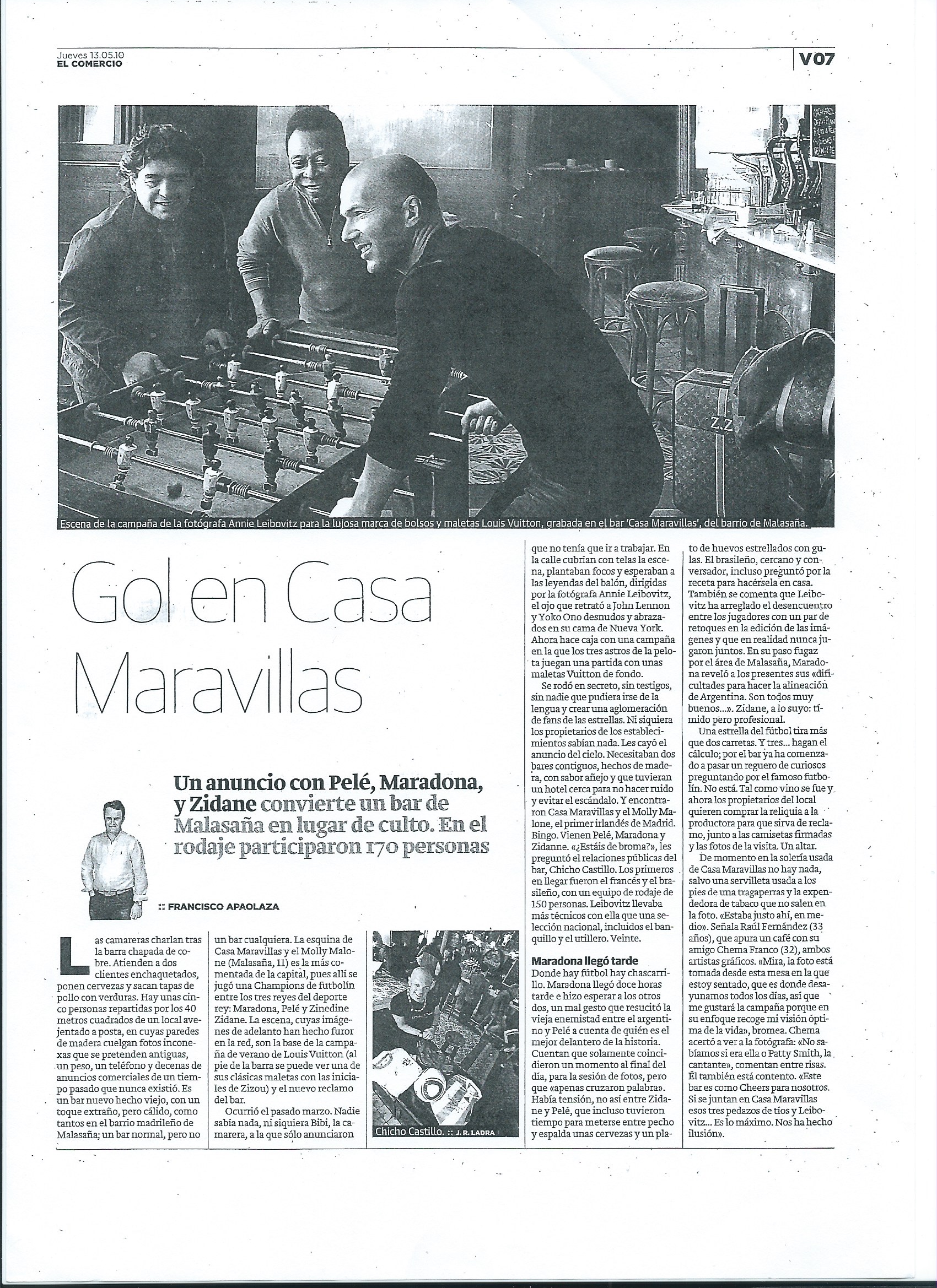 Pelé, Maradona y Zidane visitan Casa Maravillas. Artículo El Comercio. Madrid 2010