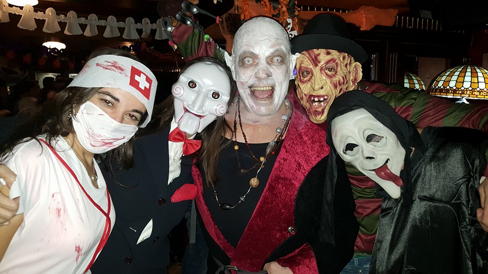 Chicho con un grupo de amigos en Molly Mallone’s. Halloween 2015
