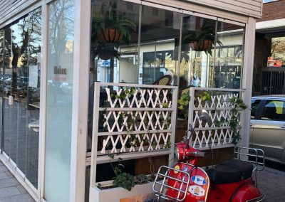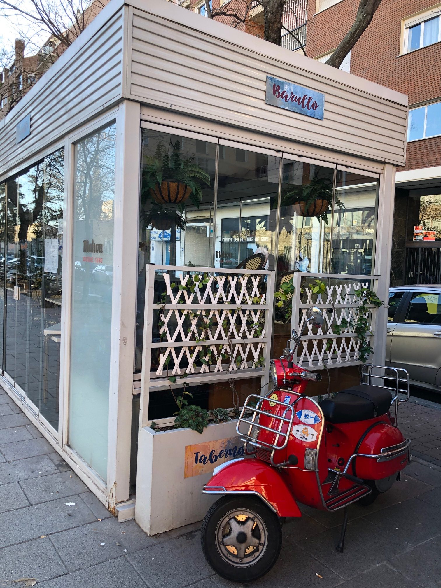 Imagen de febrero de 2021 de la Vespa de Chicho en la terraza de Taberna Barullo (Madrid), su último lugar de trabajo en la hostelería