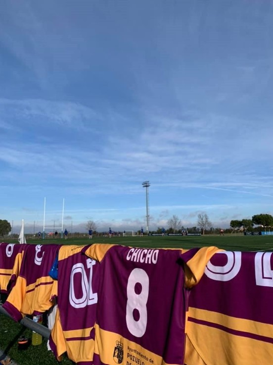 Tras el minuto de Silencio, el CRC Pozuelo Rugby (anteriormente Canoe) hará entrega de la camiseta núm. 8 a Ana, mujer de Chicho. Fue en el partido contra el Marbella Rugby Club. Pozuelo (Madrid) 20/12/2020